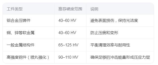 中等硬度(65–125 HV)則在清理效率與表面保護之間取得平衡,是多數(shù)工業(yè)應(yīng)用的選擇。